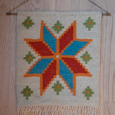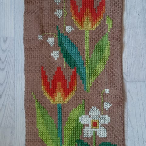 Vægbroderi, Japansk antikvitet, Antik japansk vægbroderi. Vintage. Silke vævet og håndbroderet. Med revner i dug.