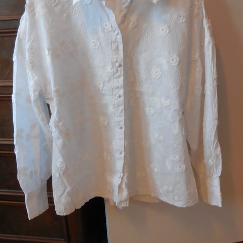 Skjorte med små fugle. Grafisk simpelt mønster. Vila, str. 40, hvid, Næsten som ny, Brugt få gange-som ny