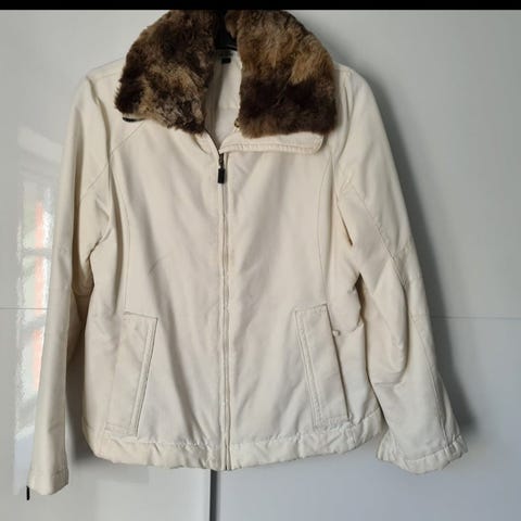 Figursyet og mange fine detaljer. NP: 3000 kr. Standen er rigtig fin, men der mangler desværre en trykknap, som dog er uden betydning, da den har lynlås og det ikke kan ses udefra. ( se sidste billede). Længde: 80 cm. Bredde fra ærmegab til ærmegab: 51 cm. Taljen kan reguleres indvendigt i jakken.