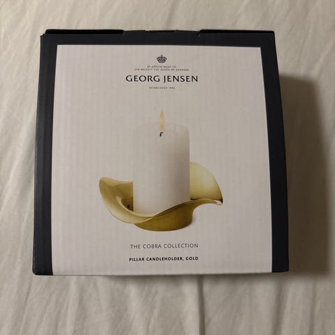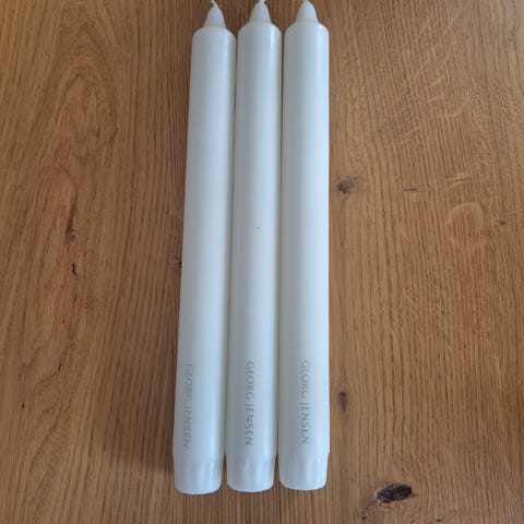 Stearinlys, Georg Jensen, Sælger mine Georg Jensen stearinlys til Cobra gulv-stager, næsten ubrugte. Fire er kun lidt brændt, og én er ubrugt. Et af de lidt brændte er knækket i midten, men det har ingen betydning og følger gratis med.