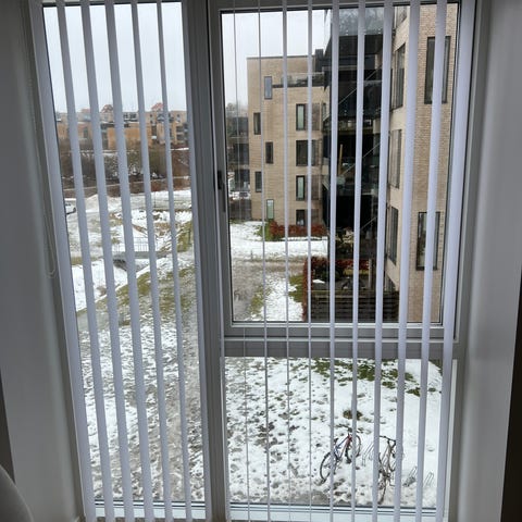 26 hængere. Hvid. Træk så lamellerne kan vendes samt trækkes til side. Rigtig flot og uden skavanker. Monteringsbeslag medfølger. Kan evt. afhentes i Århus