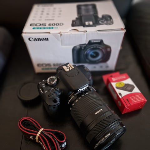 Canon, 600D, spejlrefleks, 18,4 megapixels, (18-55) x optisk zoom, Perfekt, Uden brugsspor. Selfie og youtube venlig da det har en roterende skærm. Mulighed for nemt overførsel billeder til din telefon med USB kabel-adapter. Optager FHD video. Fungerer som skal. Lavt shutter count 7444. Sættet består af: