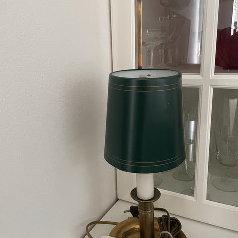 Anden bordlampe, Studerelampe/studenterlampe, Studerelampe / studenterlampe. Dansk design i messing og holmegaard opalglas skærm fra 1. halvdel af 1900.