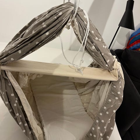 Vuggen kan hænges i beslag på en dør , eller man kan skrue et medfølgende beslag op på en væg.