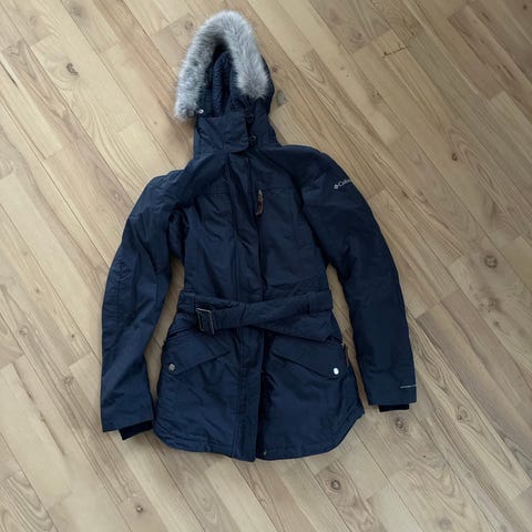 Vintersæt, Dunjakke og vinter bukser, Columbia , str. 140, Dejlig varm dun vinterjakke med hætte og snefang i en meget lyseblå farve.