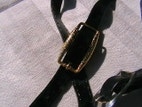 Bælte, 3 Bælter., RETRO, str. 92 - 80 - 105 cm. , 2 sorte + 1 brunt., Velur - Læder., Ubrugt, RETRO: 3 Bælter. Nr. 1: Sort velur (måske på læder) med fint metal spænde. L:92 cm. B: 1,4 cm. 30 kr. Nr. 2: Sort læder med blankt spænde. L:80 cm. B: 2,5 cm.30kr, Nr.3: Brunt læder med guld metalspænde. L: 105 cm. B: 1,4 cm. 25,- kr. Alle Ubrugte. Længden er max længde når de er spædt. Alle 3 stk: 50,- kr. +porto. Sender gerne.