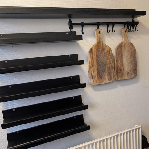 hylder , Ikea, 2 sorte Mosslanda billedhylder fra Ikea. (Uden skruer) Længden er 55 cm.