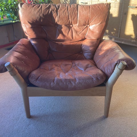 Læderlænestol, læder, Erik Magnussen, Lækkert stol som desværre ikke passer ind i vores indretning mere.