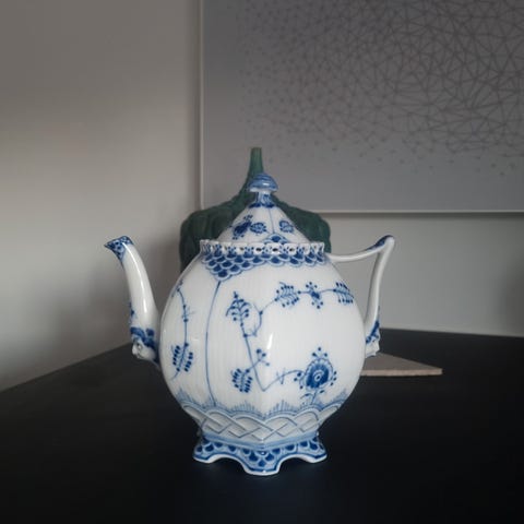 Porcelæn, Te kande, Royal Copenhagen, Super fin vintage Royal Copenhagen Musselmalet Halvblonde, tekande.