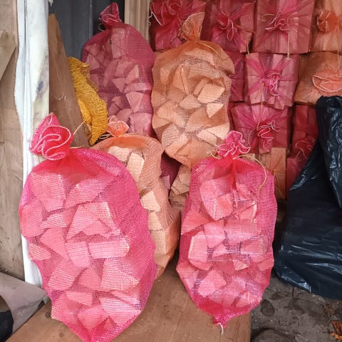 Træet er pakket i 40 l sække / ca. 12-15 kg.