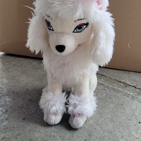 Hund, Barbie, Fin men brugt bamse Barbie Hund med bur/bæretaske