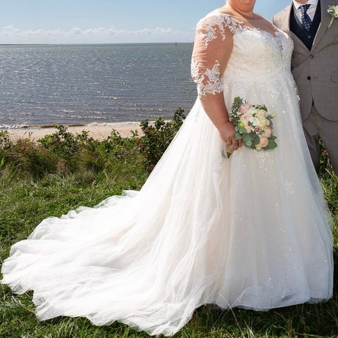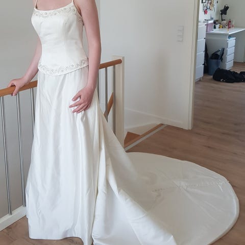 Brudekjole, Atelier Diagonal, str. 38, Ubrugt, Kjolen er dekoreret med smukt broderi.