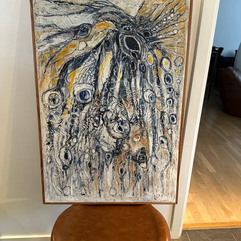 Andet, Eline Hertz Jespersen, motiv: Blomster/Have, b: 66 cm h: 70cm, Eline Hertz Jespersen. Kridttegning på papir. Indrammet bag glas ( på begge sider) Signeret og dateret 1924 så vidt jeg kan se. Fin stand.