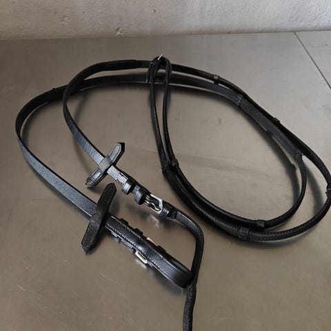 Tøjler, Thiedemanstøjle, Str full, mrk Claridge House, sort, selve tøjlen mangler, dette er kun delen der skal sidde på hesten. Spritny, lækkert blødt læder