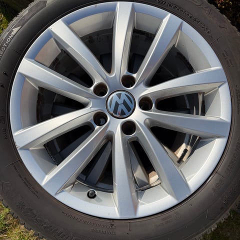 Alufælge, 17", 215 / 55 / R17, krydsmål 5, vinterdæk, Continental, 6mm mønster, fælge med dæk, 4 stk vinterdæk med alu fælge til vw passat 2015=>