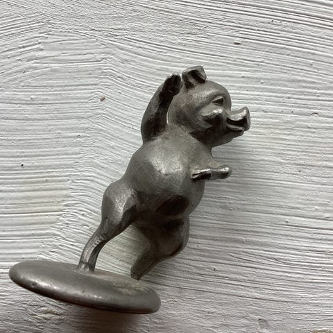 Lille gris i træ kan sidde på kant, Gris der kan sidde på en kant charmerende fin og sød i træ