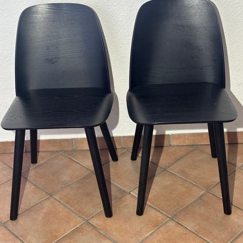 Spisebordsstol, Læder, Muuto, Muuto Fiber Chair fuldt polstret med sort læder