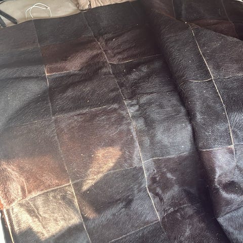 Andet tæppe, Ægte koskind, brun, ydermål 240x245 cm, mål på midt 180x193 cm, fra ikke ryger hjem og absolut et godt køb.