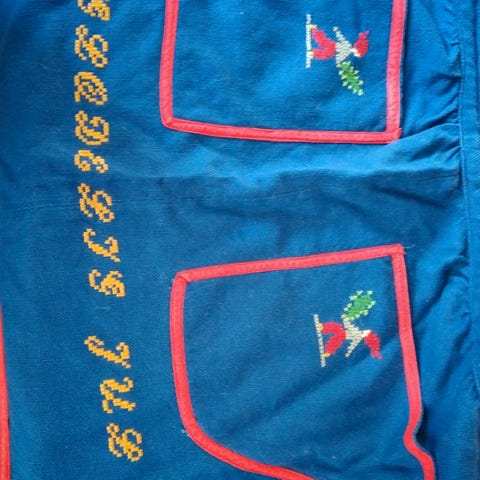Forklæde, Broderet med hvidt mønster måske som juleforklæde