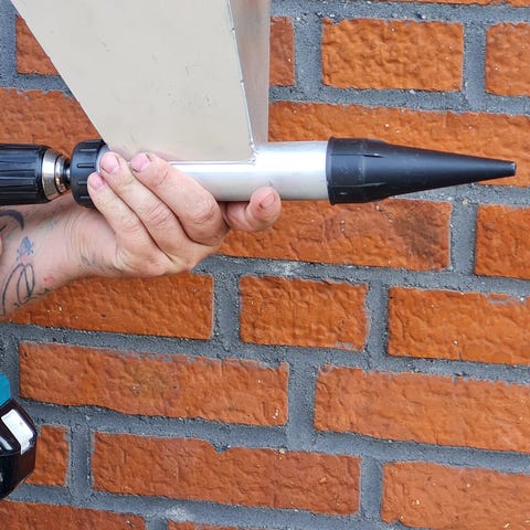 Fugepistol, Brønshøj Byg, En helt ny mørtel pistol af metal til fugning af mursten. Uden boremaskine Til cement- eller kalkmørtel.