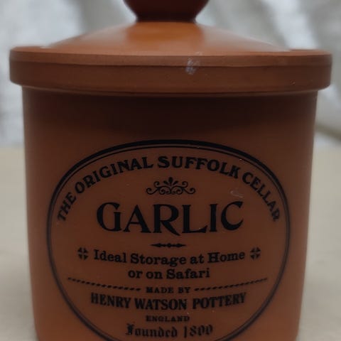 Hvidløgs krukke, Rødler, Højde 15 cm diameter 14 cm.
