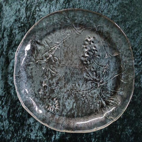 Glasfad, Italli, Diameter 20 cm , diameter I midten 10 cm, højde 4 cm.