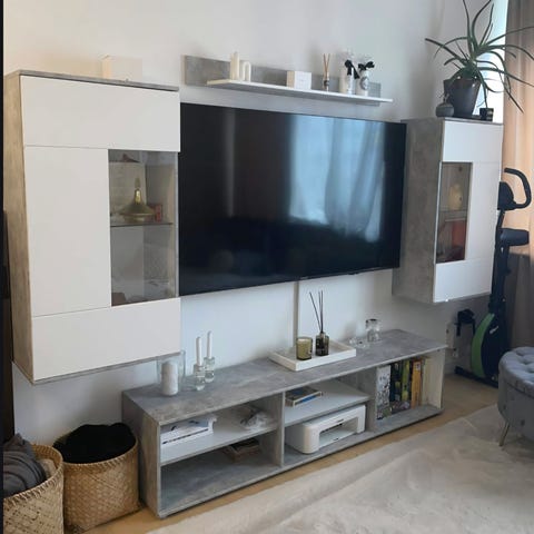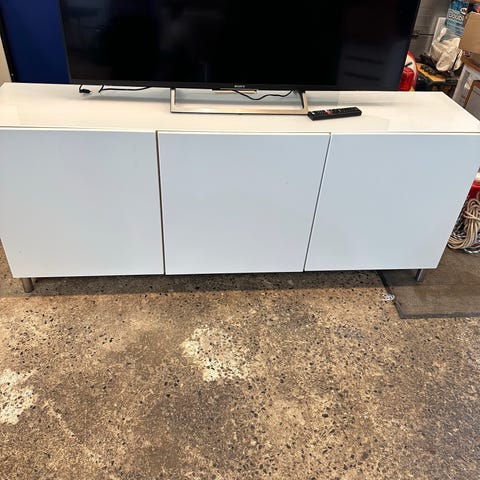 Tvreol, Ukendt, b: 120 d: 42 h: 34, TV bænk i højglans med 4 skuffer, og 1 glashylde, som er gennemgående med lys i.
