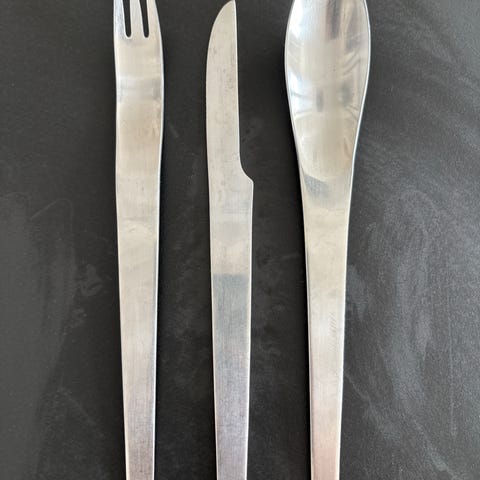 Bestik, Bestik og tagtøj, Arne Jacobsen / Georg Jensen, Arne Jacobsens ikoniske bestik der er designet for SAS. Brugt under 10 gange og har aldrig været i opvaskemaskine.