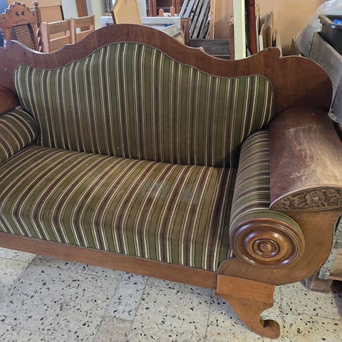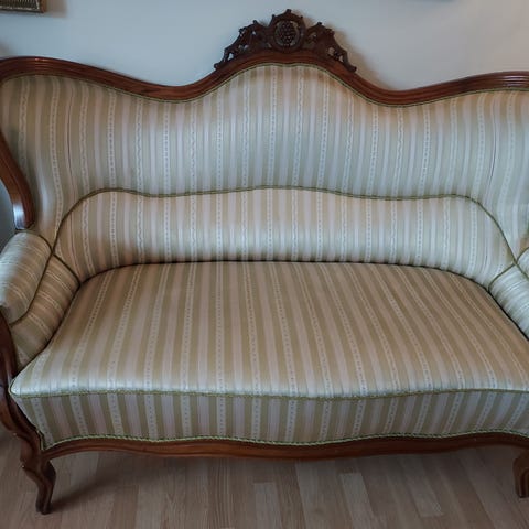 Medaljon sofa, 125 år gl., Jeg sælger min farmors gamle smukke sofa i mahogni der er en del af en spisestue sæt. Er blevet ombetrukket af en professionel møbelpolstrer i slidstærkt stof.