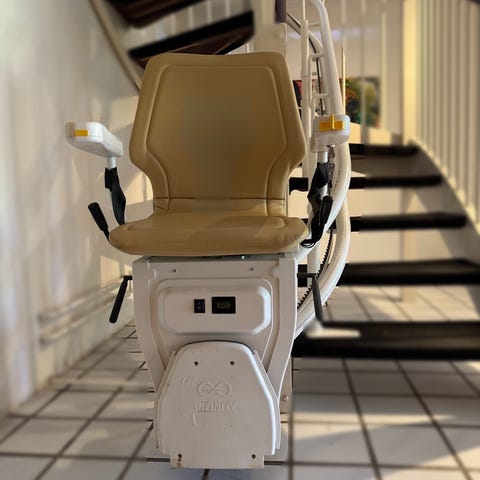 Stolelift komplet , Stannah 260, Stannah 260 stolelift er afmonteret. Har siddet i opgangen Købmagergade 1 E i Nexø. Mål kan ved interresse rekvireres. Den er fin og velholdt og der følger 2 nye batterier med. .
