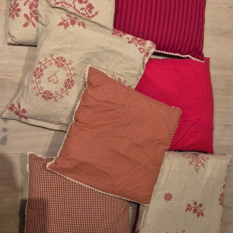 Pyntepuder, Røde pyntepuder med hvide snefnug. Passer til jul.