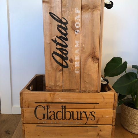 Trækasser, Opbevaring køkken indretning dekoration, 5 meget dekorative rustikke trækasser fremstillet af gamle kaffekasser.