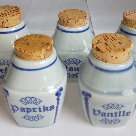 6 stk. flotte dekorative retrokrydderi krukker i keramik fra Søholm