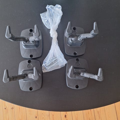 Guitar ophæng, K&M 16295 wall hanger, Sælger disse tre guitar ophæng, da jeg hellere vil have den til at hænge lodret.