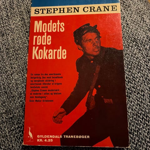 Modets røde kokarde, Stephen Crane, genre: drama, Fantastisk bog om en ung mands møde med krigen og hans egen usikkerhed og tvivl. Velholdt. Paperback. Evt porto kommer oveni.