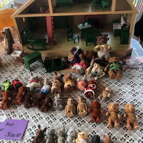 datteren har valgt at sætte til salg, flere af tingene er den helt gamle model, det ene hus har været brugt som udstillings hus i en legetøjsbutik, derfor er der spor af lim hvor man har haft limet dukkerne fast.
