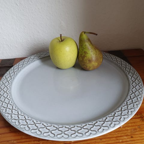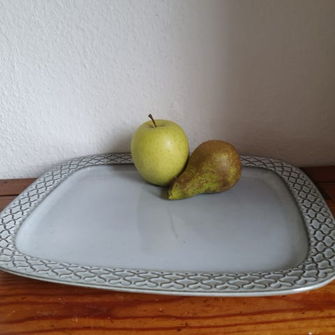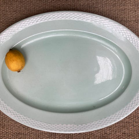 Stort flot serveringsfad. Hvidglaseret keramik. Ingen revner eller afslag.