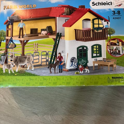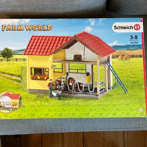 Bondegård, Schleich, Schleich bondegård med traktor m. Vogn, Sælger schleich bondegård med traktor/vogn, tilbehør som ses på billedet. Næsten som nyt og fra røgfrit hjem