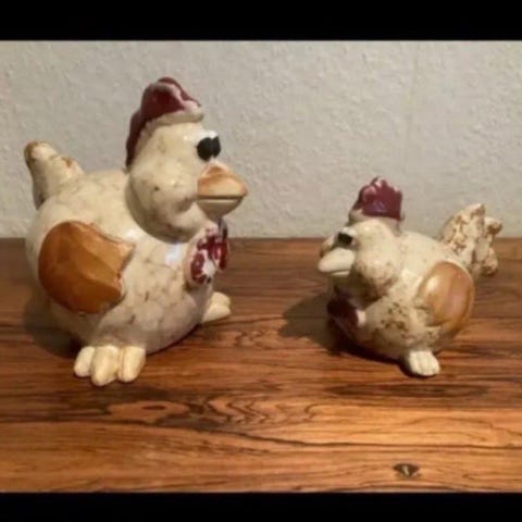 Høne med kyllinger keramik påskepynt, Ældre keramikhøne med to kyllinger