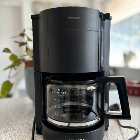 Kaffemaskine, Krups kaffemaskine med 2 termokander hvor den ene er der røget en flig af og dig ingen betydning .