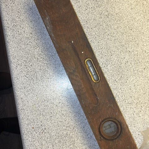Værktøj, Vaterpas, Kristianholms fabrikker, Ryder op i mit værktøj, og værktøj jeg har fra min far. Dette lille gamle vaterpas stammer fra ca. 1949 hvor min far startede som møbelsnedker lærling på Frederiksberg. Vaterpasset er ikke pyntet på, men taget lige op af hans ørbænk, og fortsat absolut funktionelt, samt super retro / vintage dekorativt...