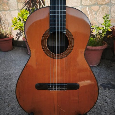 Der er tale om en højkvalitets klassisk spansk guitar med ibenholt gribebrædt, massiv palisander-sider og -bund samt massivt "high density" grandække. Den har været dyr men nogen har pillet label af og måske også modificeret den.