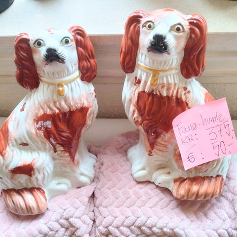 Fanøhunde , Staffordsshire, 1880, 2 flotte antikke Fanøhunde. Perfekt stand. 22 cm. Fra ca år 1900