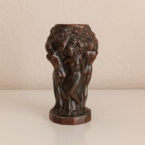 Keramik, Vase, Naturen afspejlet i glasuren. Der er noget jugendstil mikset med 60’er syre over denne lille rare stentøjsvase dekoreret med grønne, brune og orangegule nuancer. Ukendt alder. Signeret sandsynligvis med et for mit øje “BH” Felfri.