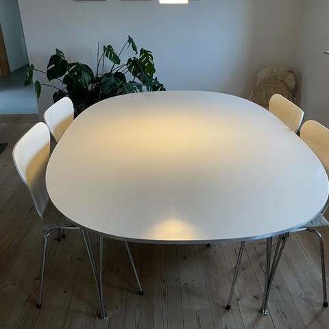 Spisebord m/stole, Incl 6-8 stole ( 2 stole er ikke så god stand så følger gratis med )