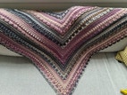 Sjal, Hjemmehæklet skal, Hjemmehæklet, str. Ole sine, Grå og lyngfarvet , Uld , Ubrugt, Smukt hjemmehæklet sjal i uld i grå og lilla/lyngfarve. Aldrig brugt.