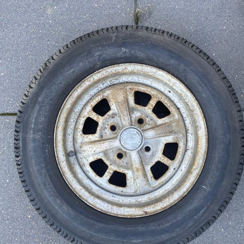 Stålfælge, 14", andet mærke, krydsmål 5 x 120, anden dæktype, BF Goodrich, fælge med dæk, Originale opel GM stålfælge ned BF Goodrich Radial T/A P215/70 R14 96S RWL med hvid stripe til klassiske opel køretøjer