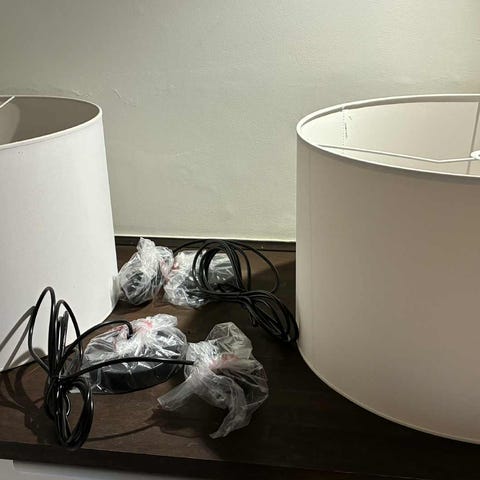Lampeskærm, Ilva, Råhvid, cylinder, har et par buler, se billeder, ø42, h 23, afhentes