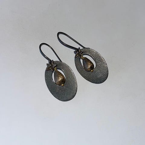 Øreringe, sølv, Unika, Ferskvands perle mørk grøn og lille lysegrøn perlemor perle.