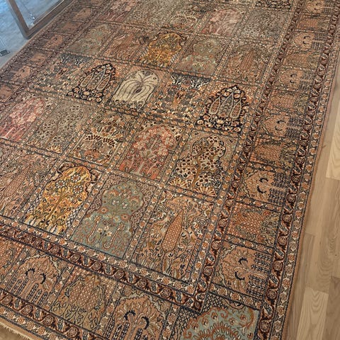 Srinagar Silk , b: 135 l: 195, Kashmir (Indien) silk tæppe med ægthedscertifikat, ca 500000 knuder pr m2